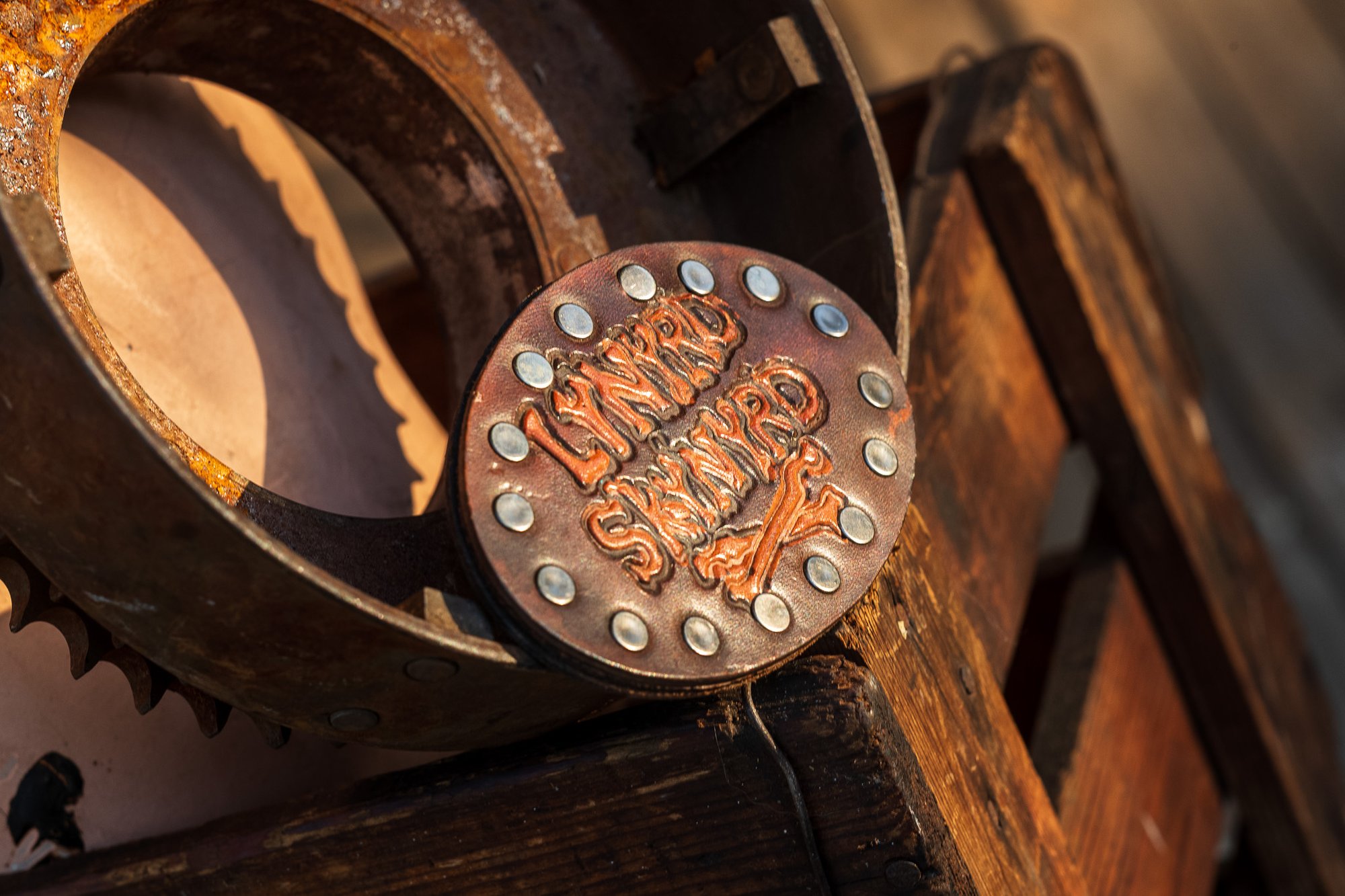 The Lynard Skynard belt buckle is beautifully made with chrome rivets stamped all around.